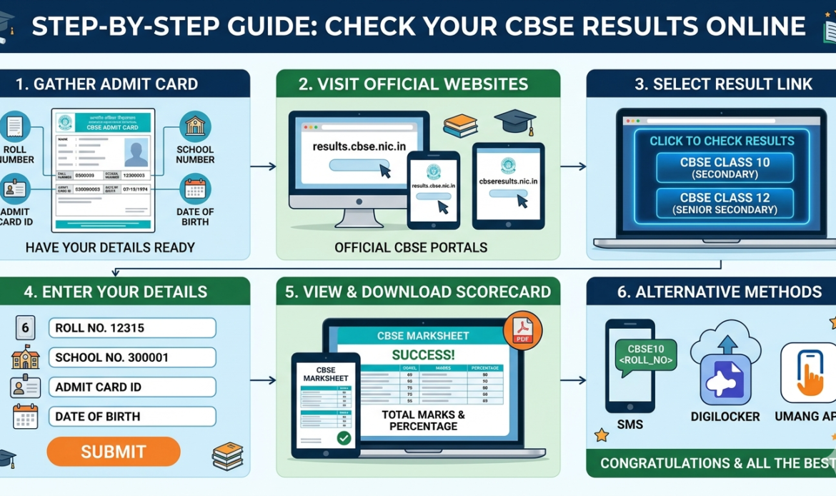 मीडिया रिपोर्ट्स और पिछले वर्षों के ट्रेंड के अनुसार, CBSE Class 10 Result 2026 कभी भी जारी किया जा सकता है। छात्र अपना परिणाम बोर्ड की आधिकारिक वेबसाइट के साथ-साथ SMS और डिजिलॉकर के माध्यम से भी चेक कर सकेंगे।