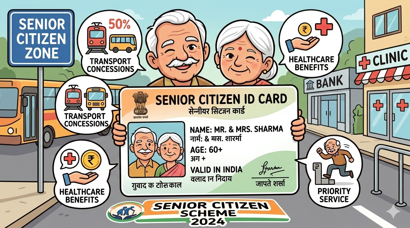 भारत में वरिष्ठ नागरिकों के लिए सरकार कई तरह की सुविधाएं और योजनाएं चलाती है। इन्हीं सुविधाओं का लाभ आसानी से दिलाने के लिए Senior Citizen Card (वरिष्ठ नागरिक कार्ड) जारी किया जाता है। यह कार्ड 60 वर्ष या उससे अधिक उम्र के नागरिकों को पहचान के रूप में दिया जाता है और इसके जरिए उन्हें कई सरकारी और गैर-सरकारी सुविधाओं में छूट मिलती है।